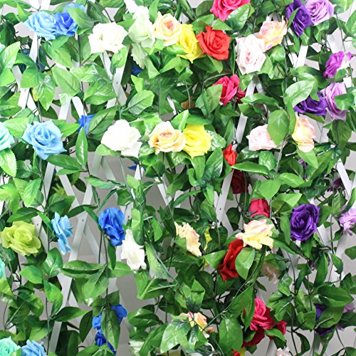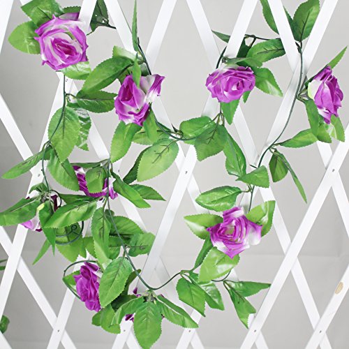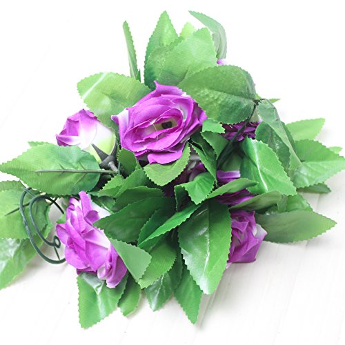Anythury 16 Feet Artificial Rose Silk Flower Green Leaf Vine Garland Home Wall Party Decor Wedding Decal (Purple)