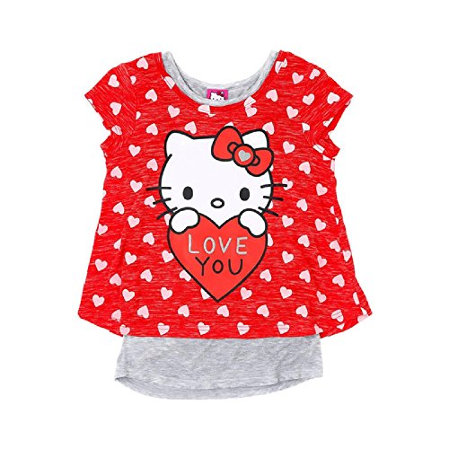 Senrio Girls' Hello Kitty Love You Valentine's Short Sleeve 2 In 1 T-Shirt - XSmall (4/5)