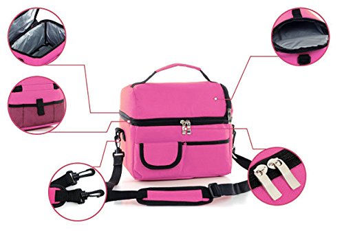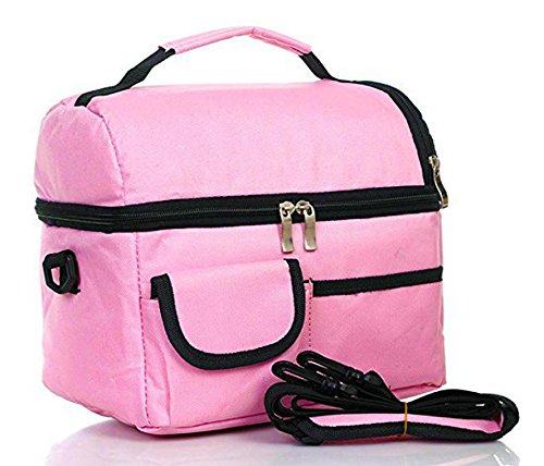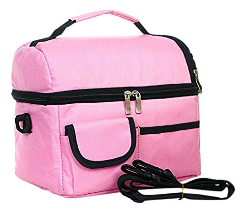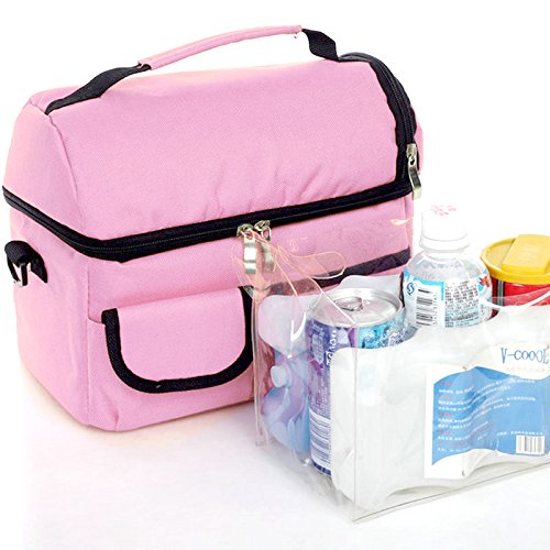 Large capacity : 24cm x 22cm x 16cm, double-deck, removable divided layer for more expandable space in lunch bag. Multiuse for school or work lunch pack, or infant baby bottle refresh bag, mummy nursing bag, travel picnic food carry pouch