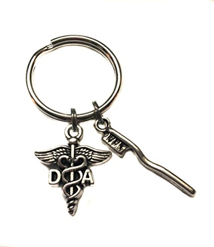 Product Description Keychain made with a 22mm x 18mm antique silver tone Dental Assistant charm and a 30mm x 3mm antique silver tone toothbrush charm. Makes a great gift for your favorite dental assistant! 0