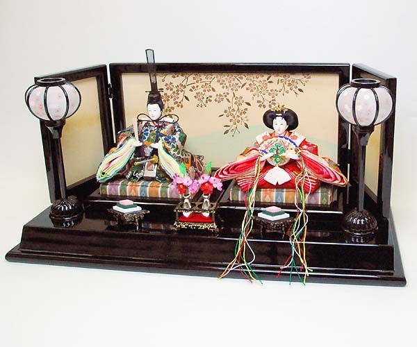 ・台座・屏風等には落ち着いた色目の雛人形セット。