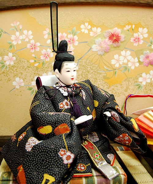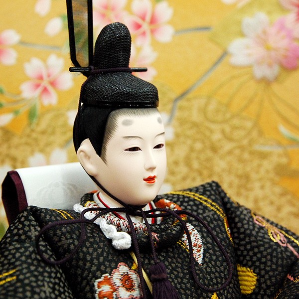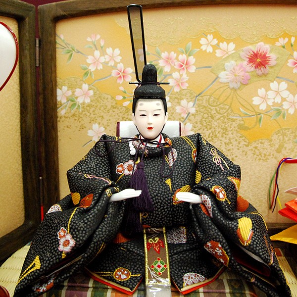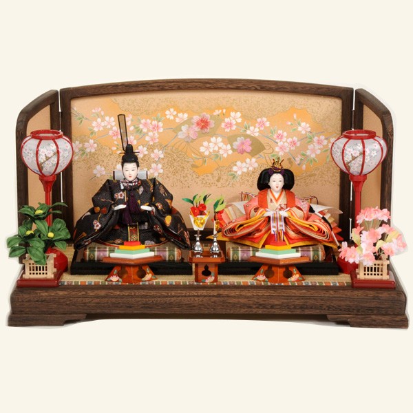・台座・屏風等には落ち着いた色目の雛人形セット。