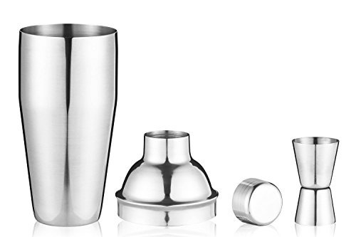 -. Feature : ENTERTAIN YOUR FRIENDS - Want to create delicious cocktails for your friends? This is the bartender tool you need. It will allow you to quickly and easily create even the most complex drinks without making a mess or poorly mixing the ingredients. If you want your friends to be amazed by the drinks you make - you need this cocktail shaker set. You can even use it as a Boston shaker! / HIGH-QUALITY - FDA APPROVED - Made from rust-proof stainless steel, this cocktail shaker not only looks fantastic but is built to last. It's guaranteed not to rust, leak or lose its quality over time. It can even be safely cleaned in the dishwasher! / INCLUDES: A large 24 oz 700 ml Cocktail Shaker with a built in strainer lid, a premium double size 1.5 0.75 oz measurement jigger / GREAT-TASTING DRINKS - If you are an at-home drink enthusiast (or even a professional bartender), this cocktail shaker set is perfect for creating great-tasting drinks. / Simple easy to use is recommended for a beginner or an experienced bartender. Experience the improved taste of a large variety of spirits Tequila, Rum, Vodka, Gin,Whiskey, Bourbon, Scotch, Cognac, Port, Sake also Liqueurs plus others so that you can satisfy different tastes also keep everyone, happy.