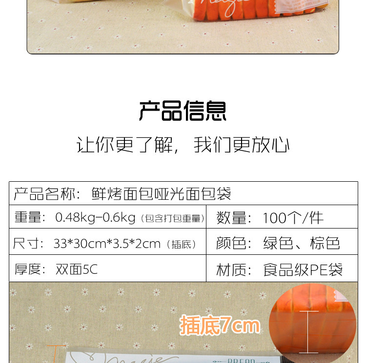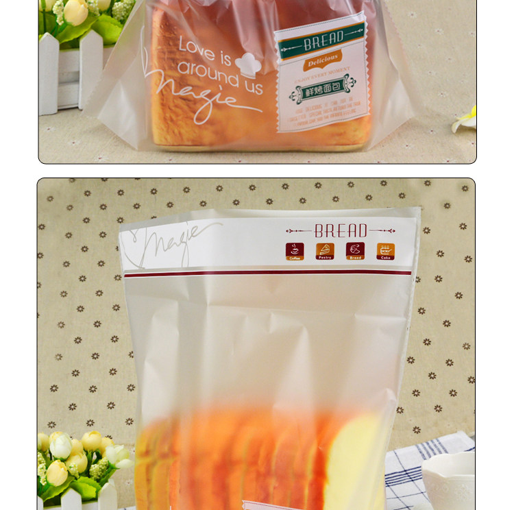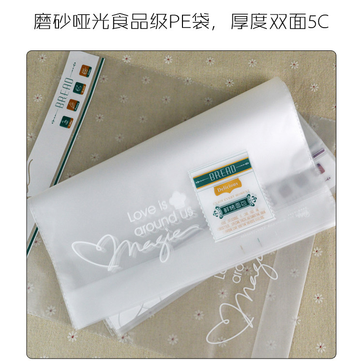 面包吐司袋 齐口磨砂鲜烤面包包装袋子100个 烘焙饼干袋