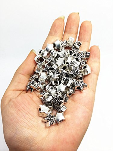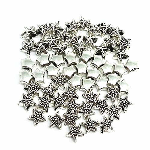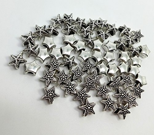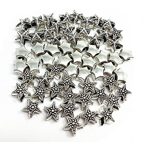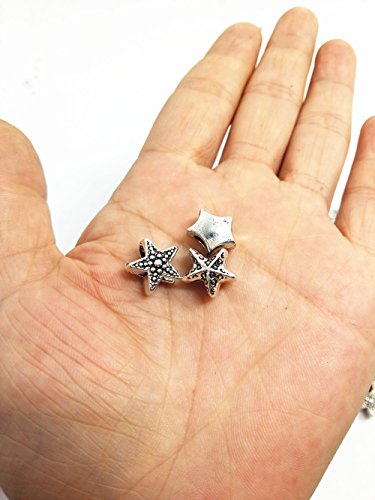 QTMY 60 PCS 5mm Hole Macroporous Mixed Stars Starfish Spacer Beads for Jewelry Making Supplies in Bulk