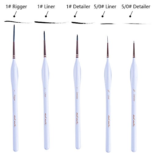 - Excellent variety: This set contains 5 artist taklon liner brushes in different types and sizes: 5/0 detailer, 5/0 liner, 1 detailer, 1 liner, and 1 rigger. The wide range provides more possibilities for your perfect detailed artworks.