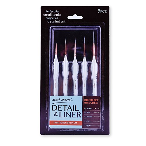Mont Marte Art Brushes Set Detail&Liner Artist Brush Set 5Pce with Wood Handles