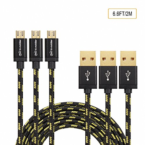 Hi-mobiler® (3-Pack) 6.6ft/2M High Speed Tangle-Free Nylon Braided USB2.0 A Male to Micro B Cable with Aluminum Shell and Gold-Plated Connectors for Samsung LG HTC and Other Tablet Smartphone (Black)