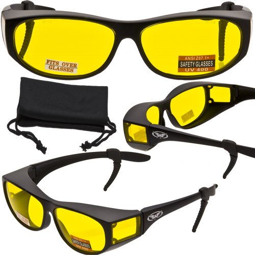 ESCORT ADVANCED SYSTEM SAFETY GLASSES FITS OVER MOST PRESCRIPTION EYEWEAR - FREE RUBBER EAR LOCKS AND MICROFIBER POUCH! -GLOSS BLACK FRAME