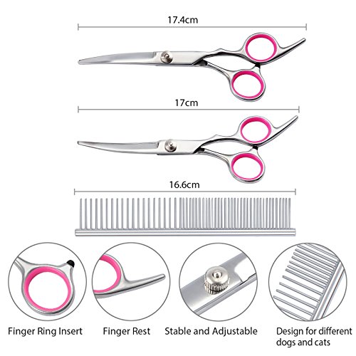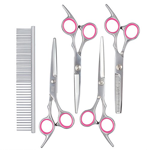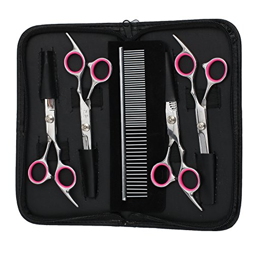 Studio : Rhinoco Publisher : Rhinoco Binding : Electronics Product Description Features: 1. All the tools are totally made of 304 Stainless steel. 2. All the cutting tools come with razor sharp edges which help in the detailing aspect as well. 3. All the scissors comes with a finger rest for enhanced comfort which is effective when in longer use. 4. The finger rings coming with this product and also the handles are nicely contoured to provide the maximum comfort. 5. Material: Stainless steel 6. Size:6inch Package Content: 1 x Straight scissor 1 x Thinning scissor 1 x Curved scissor point up 1 x Curved scissor point down 1 x Grooming Comb 1 x Scissor case 0