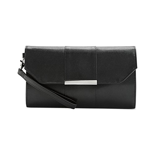 -. Feature : Featuring silver-tone hardware, magnetic snap closure, wristlet, slip pocket, wristlet strap, snap closure, this clutch looks stunning.