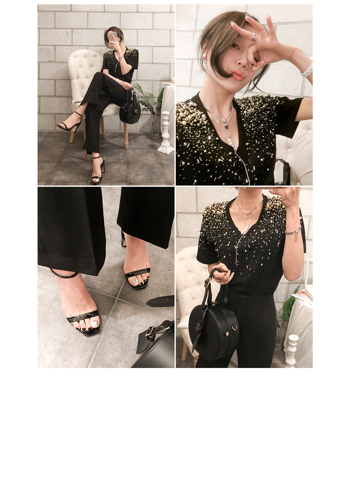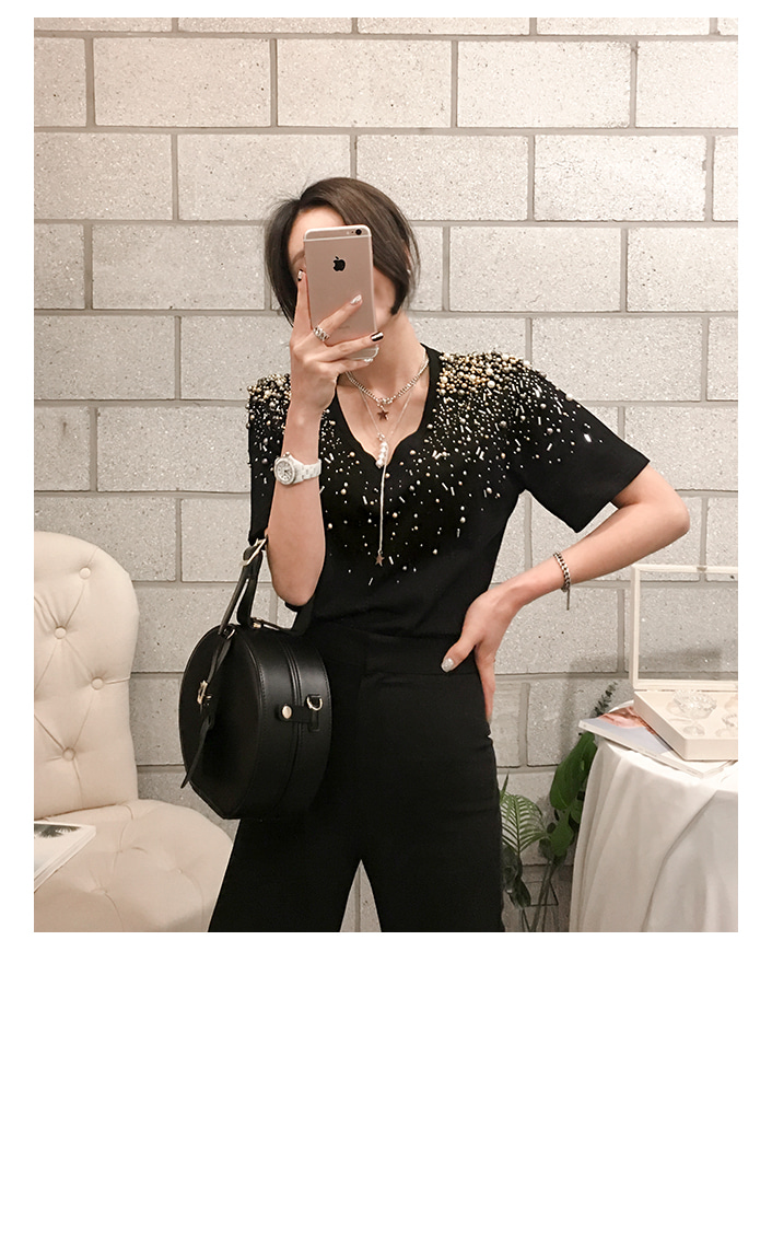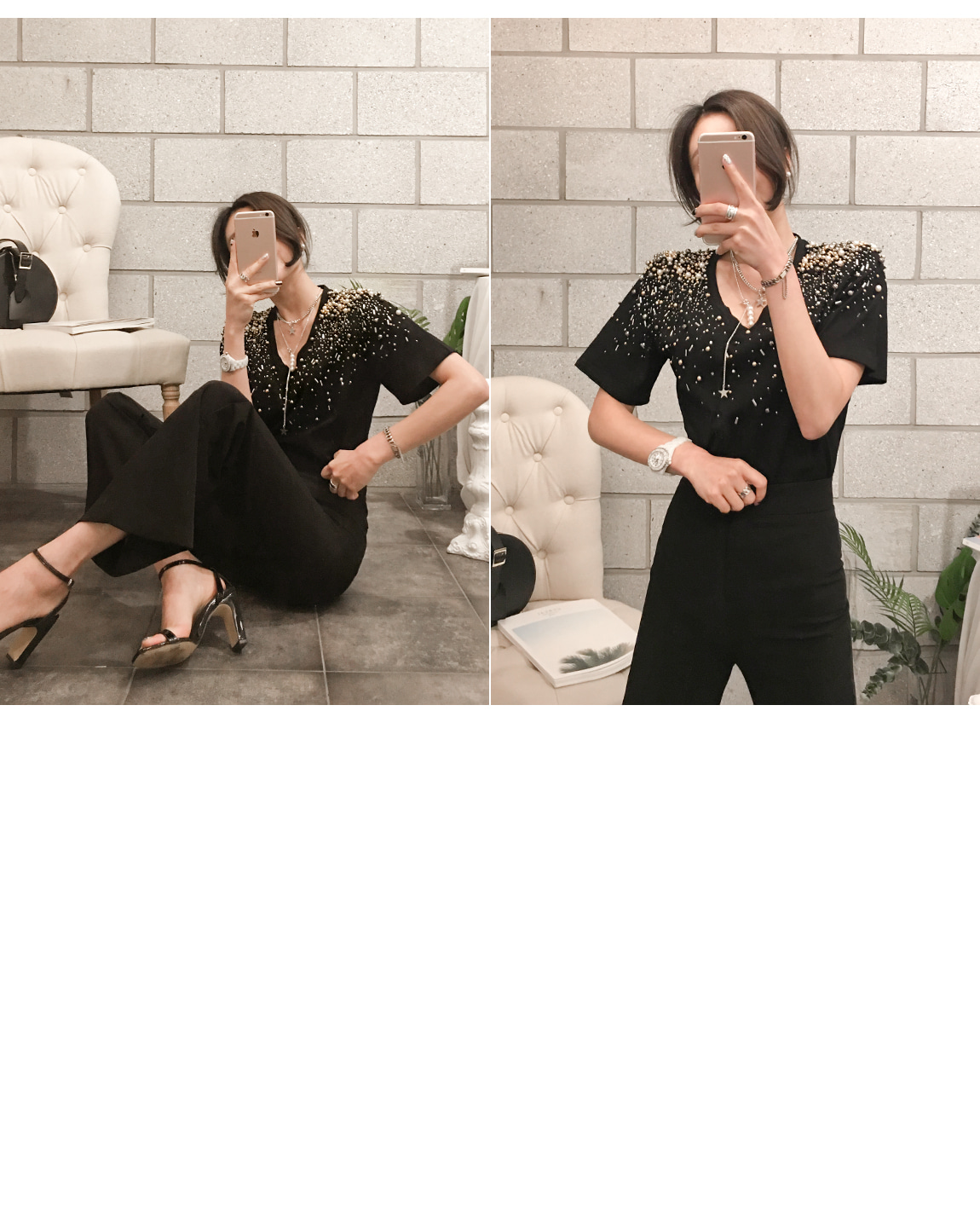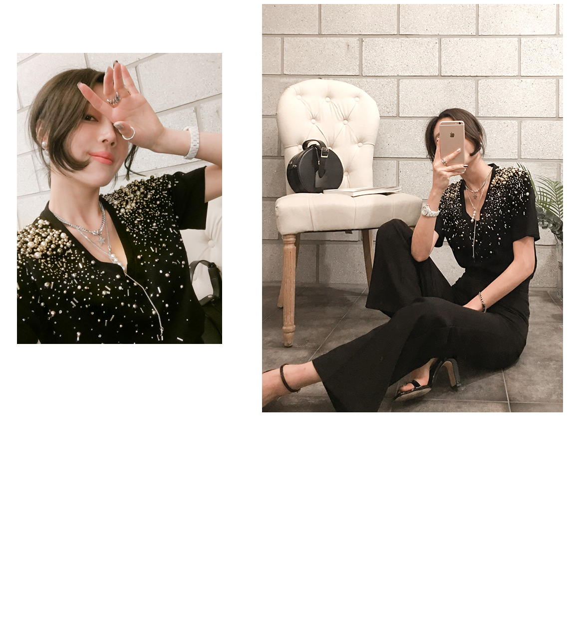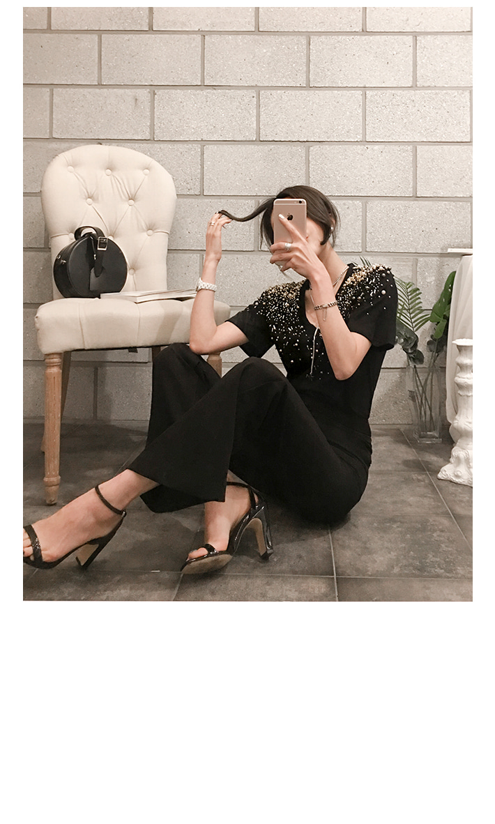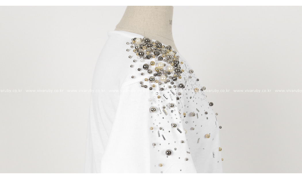 ショルダー・ラインに沿って下りてくる晋州スパンコールディテールにトレンディます