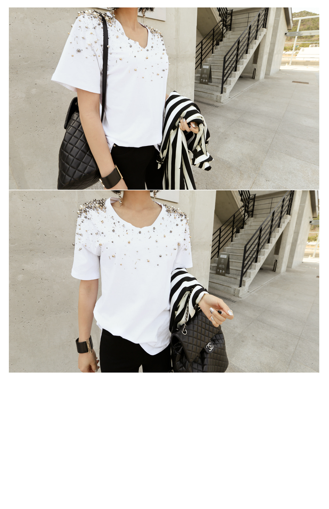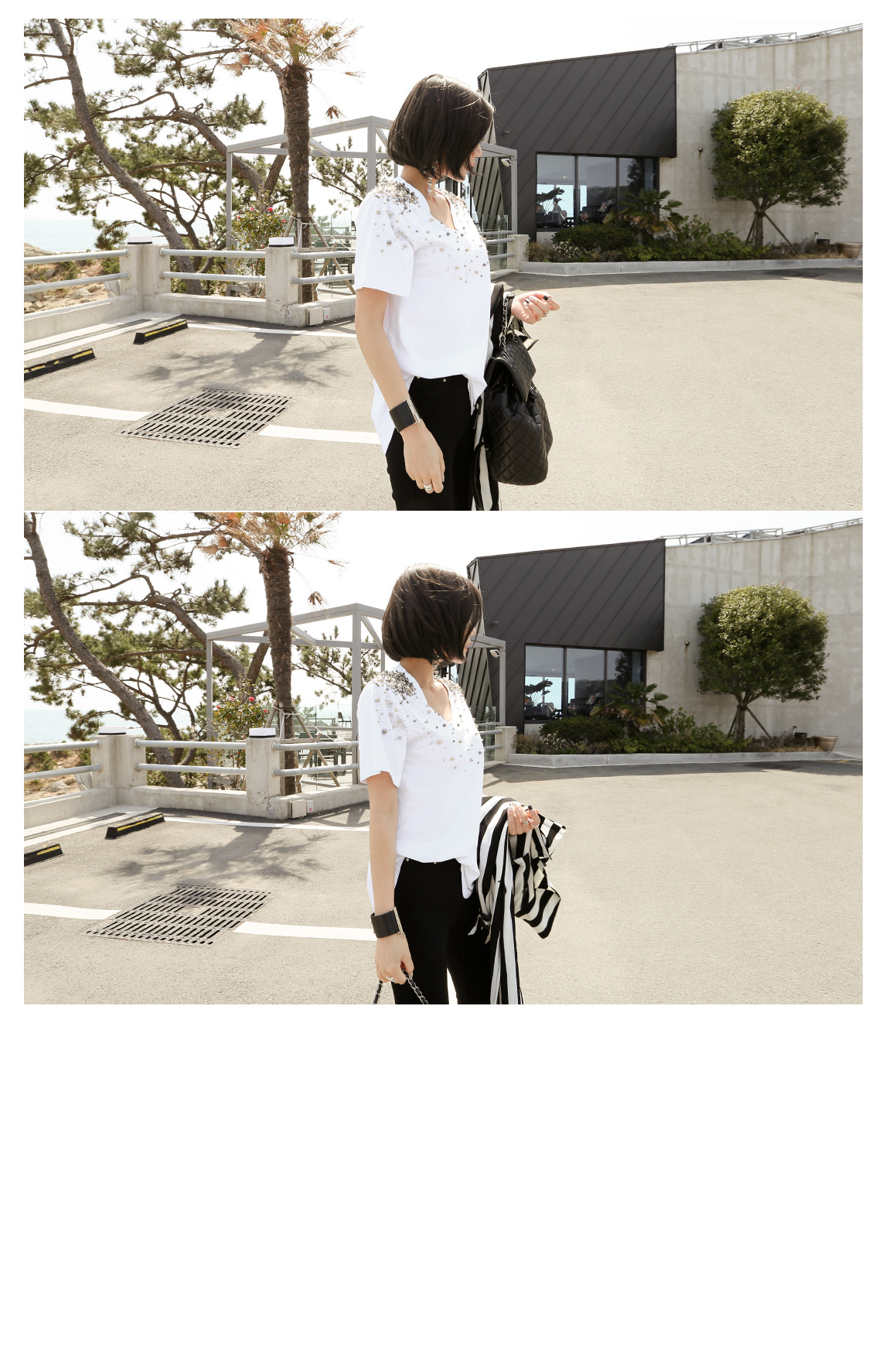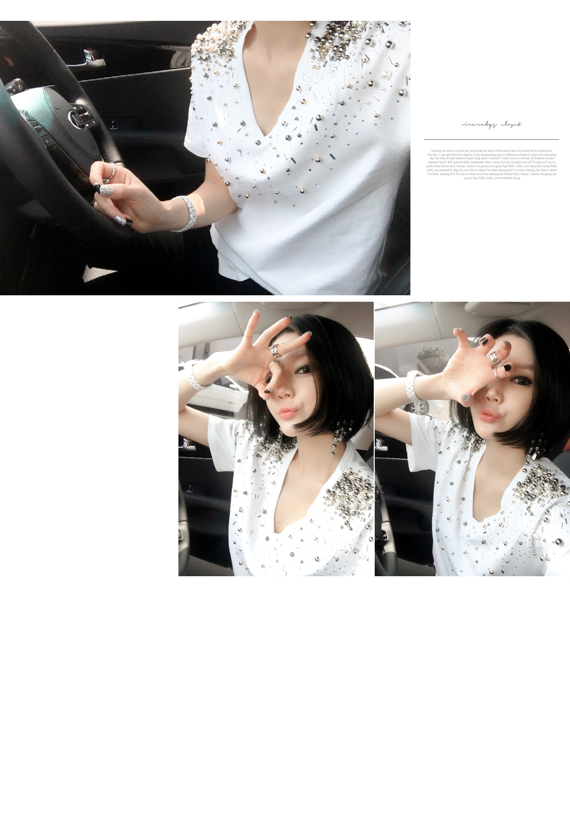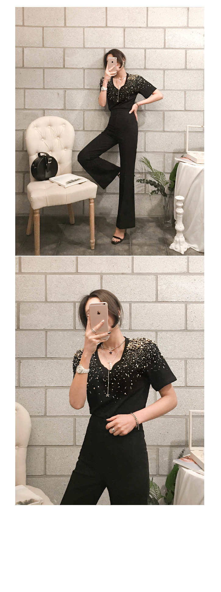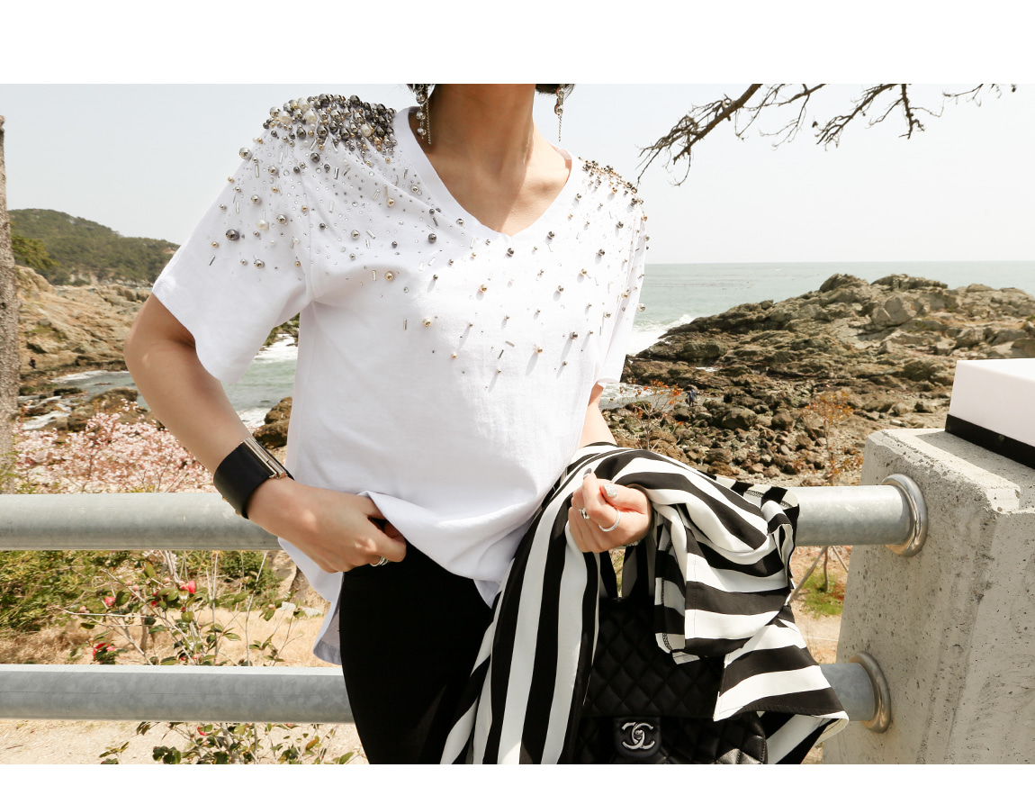 ショルダー・ラインに沿って下りてくる晋州スパンコールディテールにトレンディます