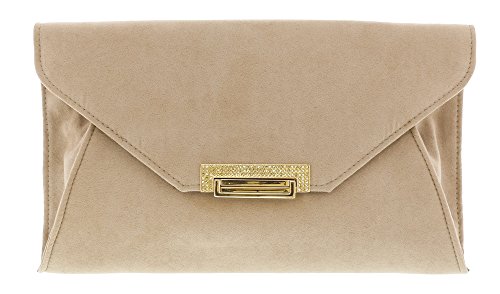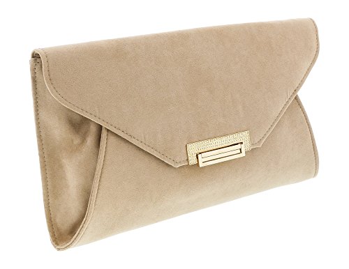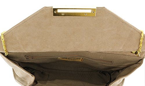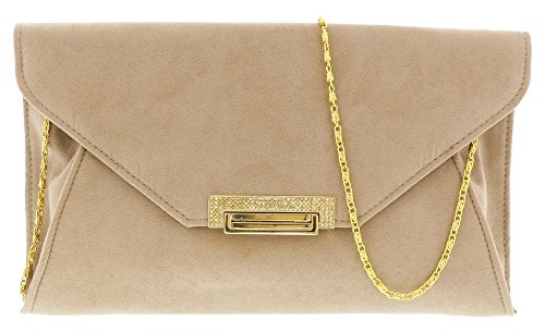 -. Feature : Rectangular enveloppe clutch- Light gold tone hardware- Soft suede-Dimensions:11in-7in-1in / Push down lock closure- Gleaming embellished hardware- Single chain strap / The perfect finishing touch to any sophisticated day to evening look. / Comes in original Scheilan dustbag and presentation box- / 100% Authenticity guaranteed or Money back