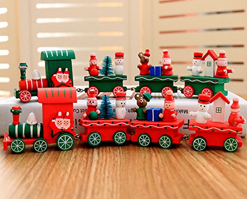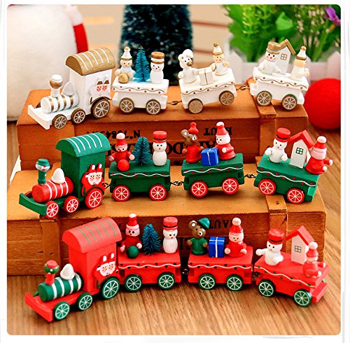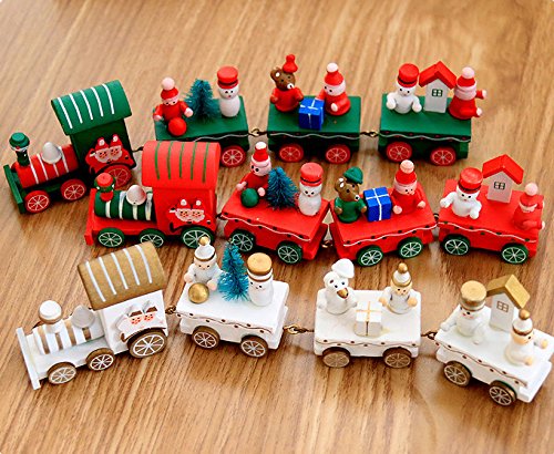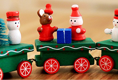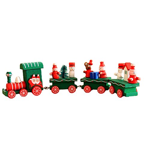 Christmas New Year Wooden Small Train Children Holiday Christmas Gifts Set Ornaments X'mas Decorations (Green)