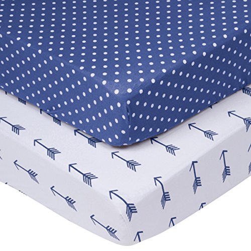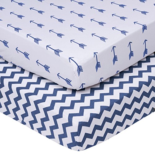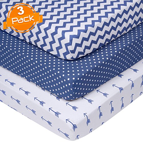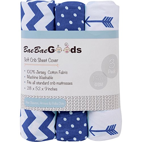 (BaeBae Goods)/Nursery/Bedding/DIRECT FROM USA/Crib Sheets Set for Boys Girls | Super Soft 100% Jersey Knit Cotton | Navy and White | 150 GS...
