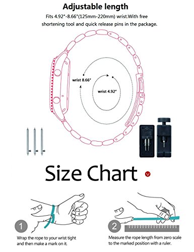 SAFE AND COMFORTABLE: 1. Having a two button press to unlock also stops accidental bumps knocking it off. 2. Compared to rubber strap, stainless steel watch strap has better breathability and prevents you from allergy. 3. It feels nice on the skin; never cause your hand to sweat
