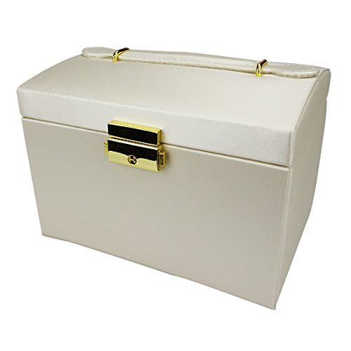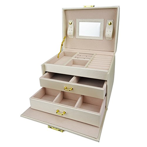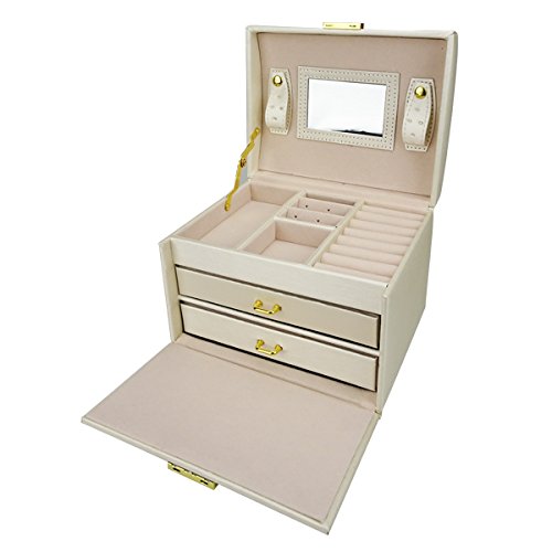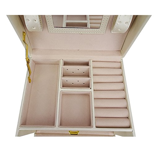 Lanscoe Jewelry Box Lockable and Travel Jewelry Organizer Mirrored Jewelry Box Storage Case Gift for Women,Girls White