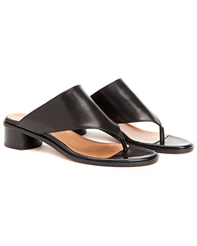 Product DescriptionSmooth leather thong sandal on a leather stacked heel.0