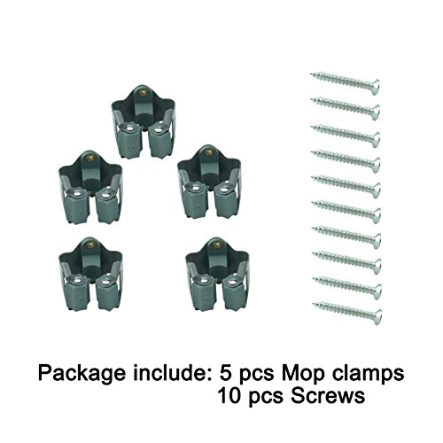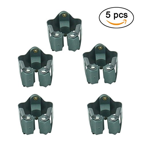 Ogrmar 5Pcs Mop and Broom Holder Wall Mounted Garden Storage Rack/ Wall Organizer for Handled Tools with 10Pcs Screws (Blackish green)