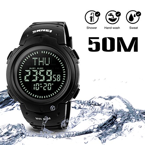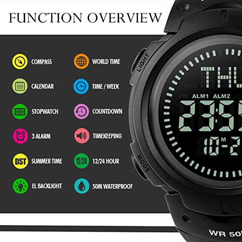 BesWlz맨즈 밀리터리 디지탈 스포츠 워치 방참배인이 손을 씻는 곳 외전자 군대LED백 라이트 표시 알람 스톱워치 kompas50M의 방수- 블랙