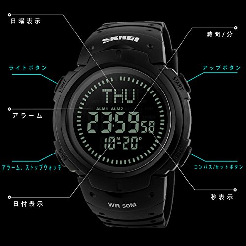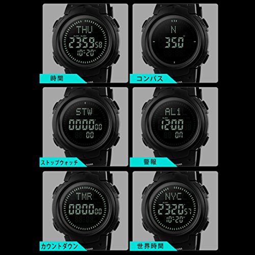 원본상품명: BesWlzメンズミリタリ?デジタルスポ?ツウォッチ防水屋外電子軍隊LEDバックライト表示アラ?ムストップウォッチコンパス50Mの防水- ブラック