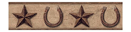 -. Brand : York Wallcoverings -. Color : Brown -. EAN : 0341366711163 -. Feature : Self adhesive / Washable: May occasionally be cleaned by sponging with soap and warm water. Great for living rooms and bedrooms. / Design Repeat: 24" / Made in the USA -. Label : York Wallcoverings -. Manufacturer : York Wallcoverings -. MPN : BG1673BD -. PackageQuantity : 1 -. PartNumber : BG1673BD -. ProductGroup : Home Improvement -. ProductTypeName : BUILDING_MATERIAL -. Publisher : York Wallcoverings -. Size : Roll -. Studio : York Wallcoverings -. Title : Brown Horseshoe Star Wallpaper Border -. UPC : 341366711163
