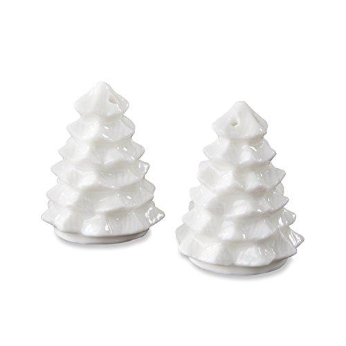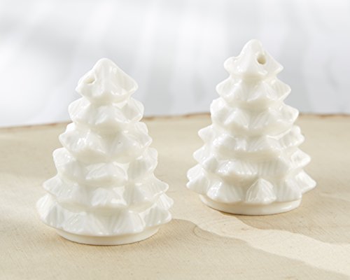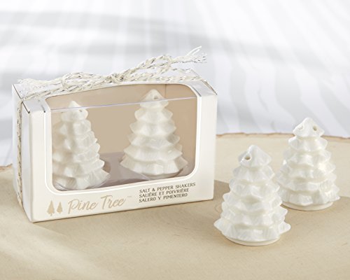 Kate Aspen Ceramic Pine Tree Salt & Pepper Shakers S and P, White