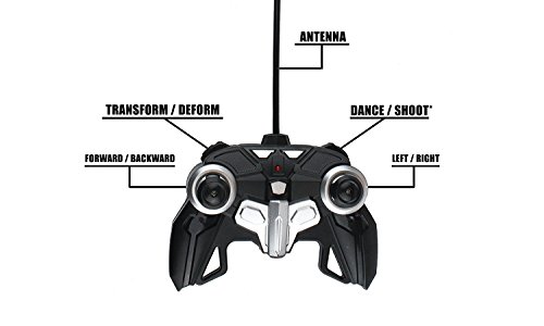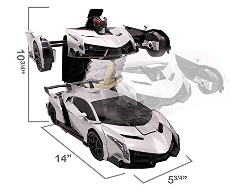 Brand New! Remote Controlled Transforming sports car Robot Warrior. One button transformation from car to Robot, Working xenon style headlamps, Realistic Engine & acceleration sound Dance Mode plays dynamic music with the robot showing off dance moves Remote Control Forward, Backward, Left and Right with Super Fast Drifting 360° turn Remote distance: 100 feet, Car requires: 3.7V LI-PO Battery Pack (included), Controller requires: 2 x AA batteries (Not included), Product size: Robot : 17 L x 12 W x 25 H ( cm ), Car : 25 L x 12 W x 6.5 H ( cm ) *** When the Autobot transform to automobile, the weapons and shields in the hand must be discharged ***