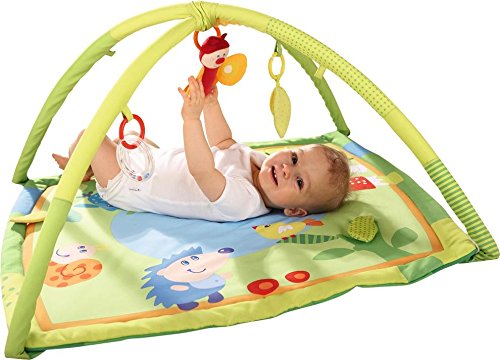 -. Binding : Toy -. Brand : HABA -. Department : baby-boys -. EAN : 4010168051512 -. Feature : Includes three different clutching toys that dangle above your little one or can be detached and held: Butterfly friend, crinkly leaf and circular rattle. / Soft, machine washable play mat has different tactile elements for even more tummy time entertainment. / Measures 31.75" x 31.75" x 16" tall. Perfect for babies from birth and up. / Flexible, soft rods attach to each corner very easily with Velcro, making set-up and storage a breeze! -. IsAdultProduct : 0 -. Label : HABA -. Manufacturer : HABA -. Model : 5151 -. MPN : 5151 -. NumberOfItems : 1 -. PackageQuantity : 1 -. PartNumber : 5151 -. ProductGroup : Baby Product -. ProductTypeName : TOYS_AND_GAMES -. Publisher : HABA -. ReleaseDate : 2016-06-20 -. Studio : HABA -. Title : HABA Magic Forest Play Gym