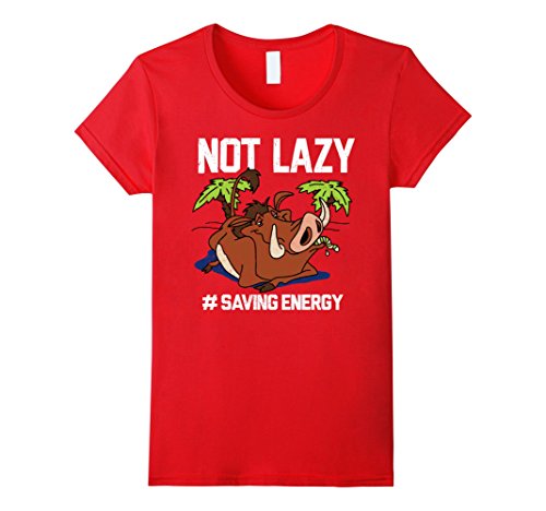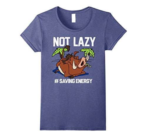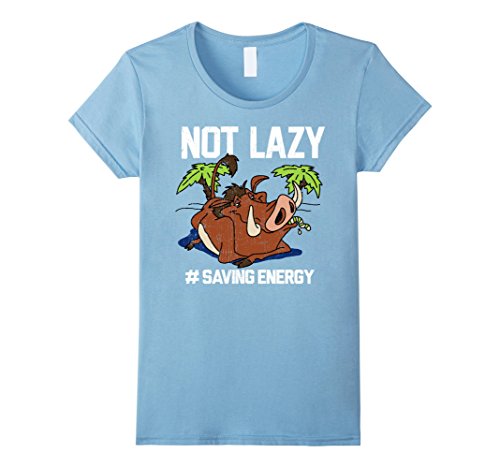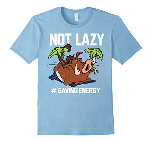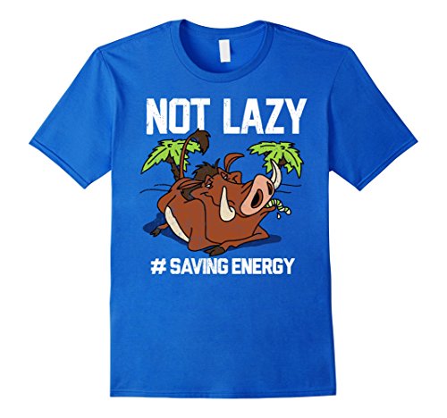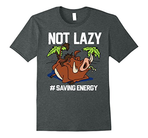 Pumbaa believes in the philosophy of "Hakuna Matata" or "No worries" for a reason! He loves to sit back and relax with the Lion King Pumbaa Not Lazy Graphic T-Shirt. Your favorite warthog is featured eating a grub with "Not Lazy # Saving Energy" in white script around him on this cool Lion King shirt.Feature