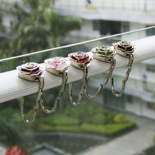 100 % Brand new and high quality Flower decoration fashion with pratical using Foldable and portable design, convenient for you to carry Keep your handbag off the floor and safe at restaurant, office, or anywhere The hook stores neatly and stays together with a black rubber in the base Non-slip back to secure your handbag without falling Will never fade,never getting rusty Can be used for less than 50 mm thickness of the desk Diameter when Folded : Approx. 45 mm; Thickness: Approx. 18 mm Length When Extended: Approx. 120 mm Color: Red