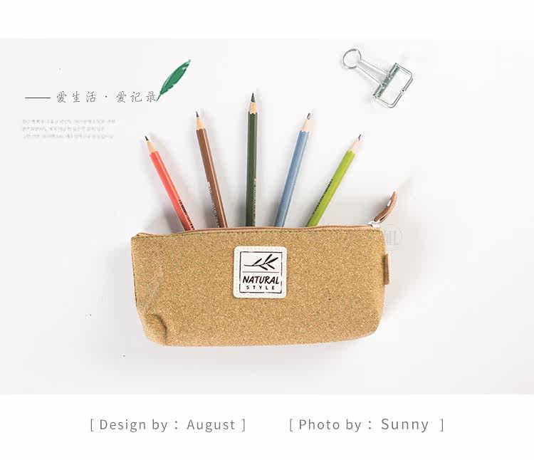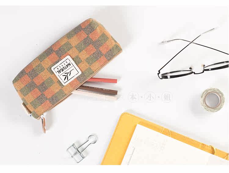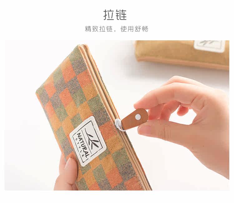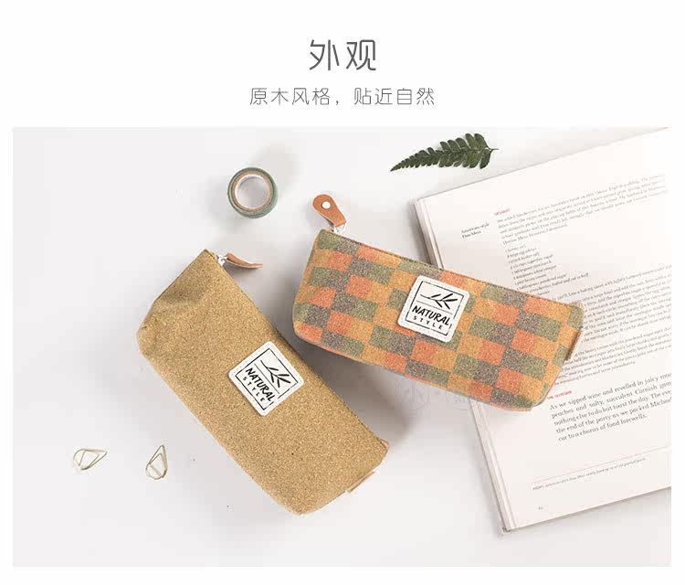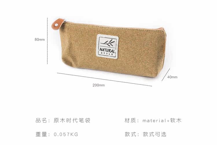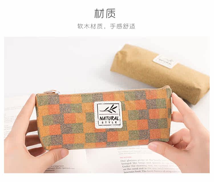 简约原木时代笔袋 便携大容量文具收纳袋 时尚学生铅笔袋