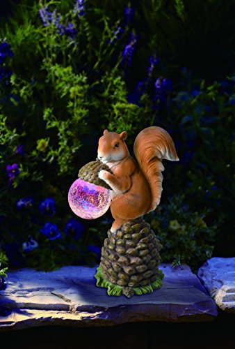 - Squirrel holds color changing crackle globe acorn that changes color at night