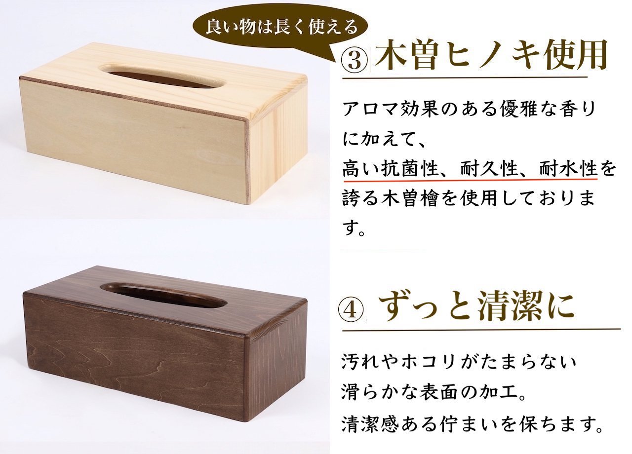 If the quality is bad, the powder of wood comes out, the feel is not so good, but this is made in Japan made by a craftsman as expected! It has a smooth touching feeling, there is no part with spit, and no wood powder. Since it can be adjusted with the Velcro in the back, it is practical to fit any type of box tissue firmly. I strongly thought that it would be more fashionable if there were no joints between the upper part and the side part. Since colors are different only at the seams, those who are concerned about becoming conspicuous may worry. But overall I am making really good.