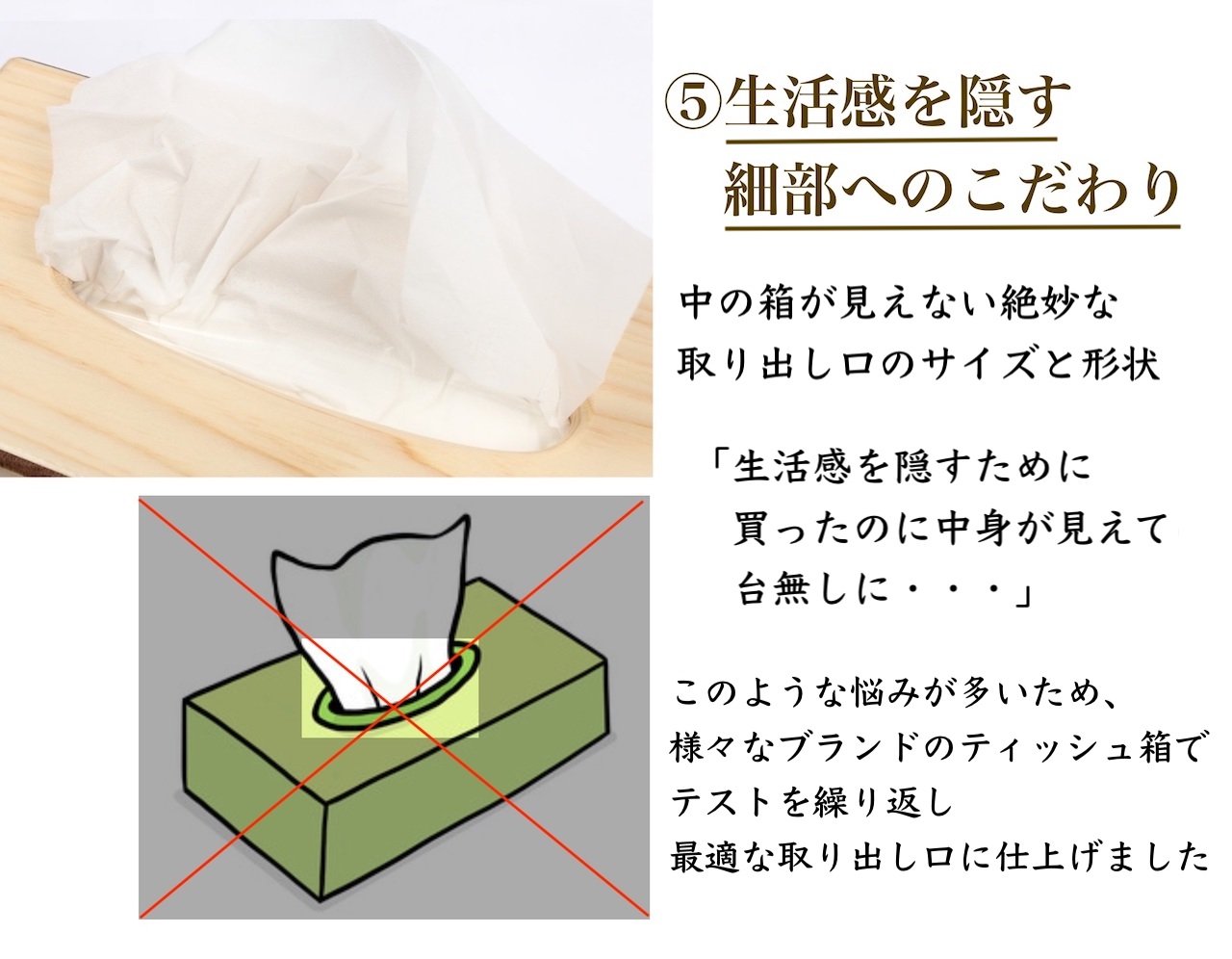 I also checked other people's reviews and decided to purchase. Items arrive soon after ordering! Both texture and design were goods as expected. It is hard to transmit from the image, but it is very light. Even if you put a tissue box, you can feel free to move it in your hand. Velcro staples are used to stop the tissue box, so I think that you can choose the size of the box freely to some extent as in the description of the item. Also, because it is all-wooden and unpainted, it may be painted with your favorite color. In that sense I think that you will be comfortable with the interior of any room. I bought this and was shopping for the correct answer.