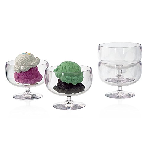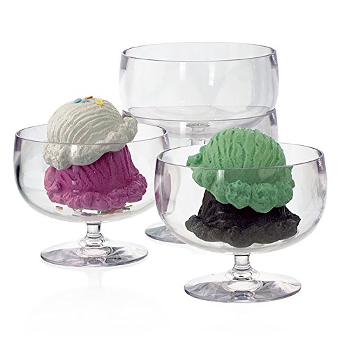Stackable Premium Quality Plastic Ice Cream Bowl or Dessert Dish - Set of 4
