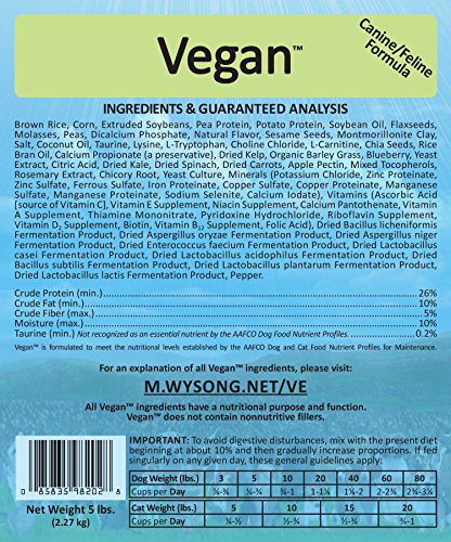 This meatless vegan cat food and dog food is excellent for elimination protocols and as a base to a fresh meat source. Vegan holistic dog / cat food has achieved extraordinary results in tens of thousands of companion animals through multiple generations for over thirty years. It was created by Dr. Wysong and owes its popularity solely to veterinary recommendation and word of mouth. This improved formulation is designed to take advantage of new processing methods to preserve natural value, and nutritional advances in epigenetics and nutrigenomics. Vegan now contains higher levels of protein and fat, and a comprehensive spectrum and higher levels of micronutrients/nutraceuticals, including prebiotics, probiotics, enzymes, omega-3s, antioxidants and more.Feature