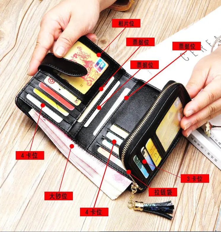 Interior:Zipper Poucht,Interior Compartment,Coin Pocket,Card Holder,Note Compartment,Photo Holder