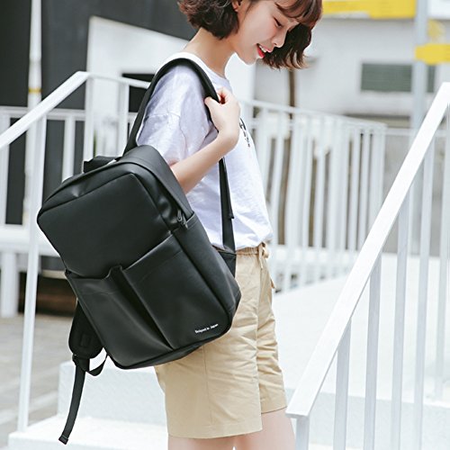 -. Title : PU Leather Men Women's Fashion Backpack Large Capacity School Bags for Teenager