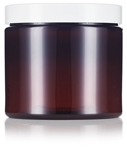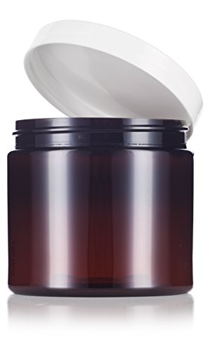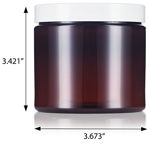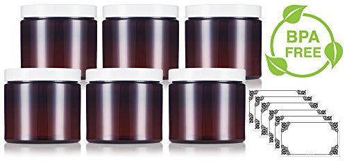 Amber Large 16 oz PET Plastic (BPA Free) Refillable Jar with White Lids - (6 pack) + Labels