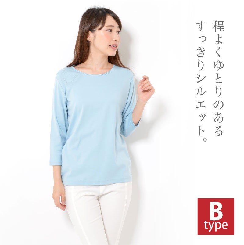 [Bタイプ/7分袖] Mサイズ バスト92(79-87) 着丈58 袖丈41 肩幅36 Lサイズ バスト96(86-94) 着丈59 袖丈41 肩幅38 |