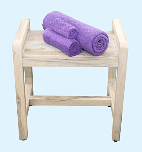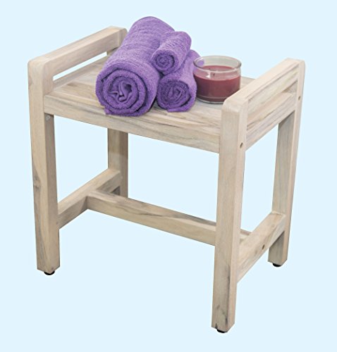 Studio : EcoDecors Publisher : EcoDecors Binding : Health and Beauty Product Description STANDARD ADJUSTABLE HEIGHT FOOT PADS TO ADJUST TO ALL SLOPED SHOWER FLOORS PROVIDES GREATER SAFETY AND STABILITY. The raised cross bar off the floor combined with the adjustable foot pads allow for ultimate stability. Each footpad allows independent adjustment in height to allow for slight slopes in shower floors. You cannot find better value combined with superior functionality. EcoDecors LiftAide ergonomic stool provides a combination of comfort and elegance to your shower, bathroom, patio, or any living area. The LiftAide arms are designed to be sturdy, and steady to provide that added support and assistance when lifting out of the shower chair. They also provide a handy surface for hanging towels on, and the stool can double as a towel rack once you are out of the shower. The teak stool is 20" in length by 13" width, by 18" high, and it comes in Coastal Vogue WHITE WASH with mildew and fungus resistors. Teak is naturally water, mold, and mildew resistant due to its natural density and high oil content. It has been the wood of choice for hundreds of years of luxury boat builders. Made in Indonesia by local crafts people. Sustainably sourced and manufactured. Weight capacity is 250 pounds. Please Note: Some Assembly is required 0