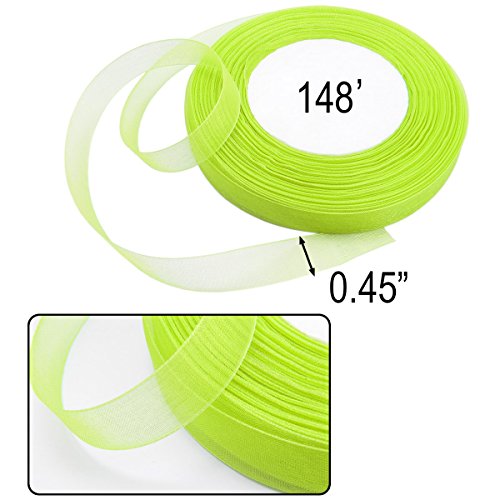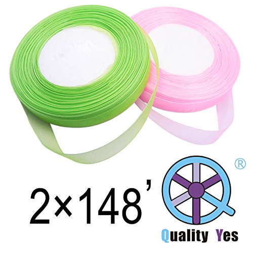 QY 2 Roll 1/2 Inch Wide by 50-Yard Monofilament Edge Simply Sheer Ribbon See Through Silk Ribbon for DIY Craft, Fruit Green and Light Pink