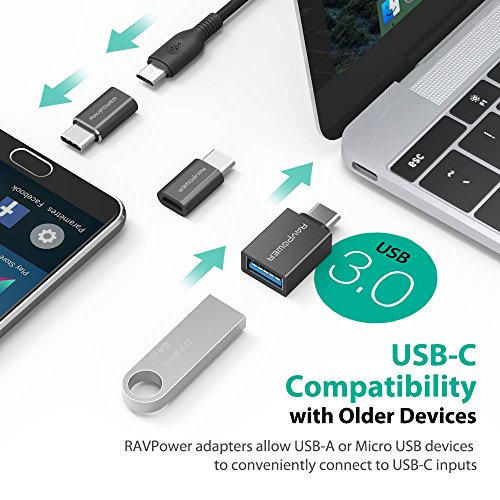 USB C Adapter RAVPower [3 in 1 Pack] USB C to Micro USB, USB C to USB 3.0 Adapter Data Transfer for Galaxy S8 S8+, MacBook, Nintendo Switch, Sony XZ, LG G5, Pixel, Nexus 6P 5X and More