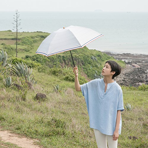 -. Title : tiohoh-Marine 日傘 uvカット 100% 遮光 折りたたみ 軽量 遮熱 親骨50cm ボーダー ネイビー