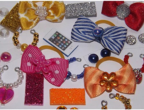 Littlest Pet Shop 4 pc Custom Made Accessories You will receive 1 Bow, 1 Necklace, 1 Phone, and 1 Pair of stick on earring : ) Colors will be picked at random so your order will be a surprise. You will not receive everything in the picture, just 4 randomly selected items. We get new colors in often so you may receive a color that is not pictured. The cat in the picture is not included, for display purposes only! Ready for gift giving : ) We combine shipping for any order. Fast Shipping!!Feature