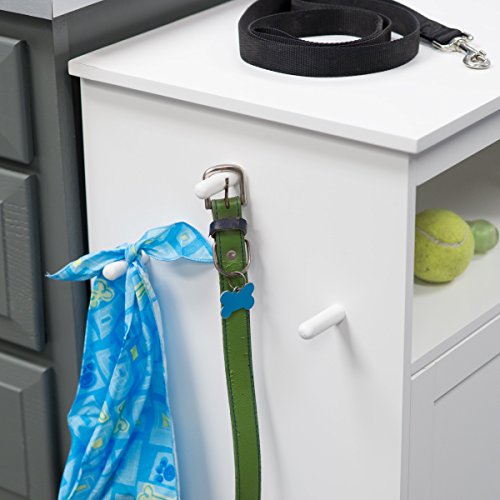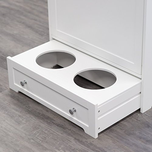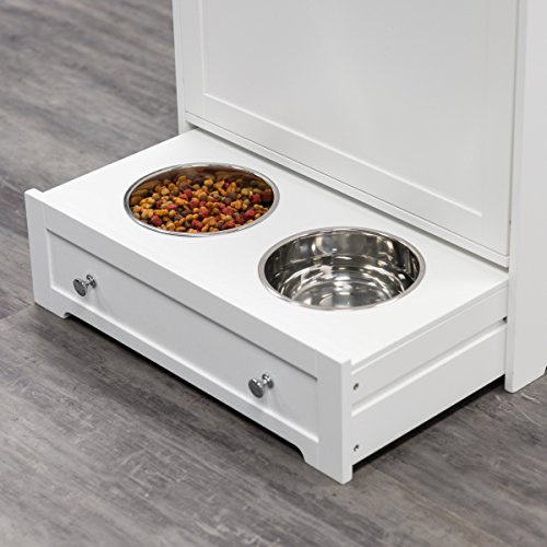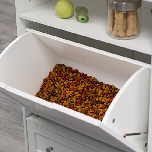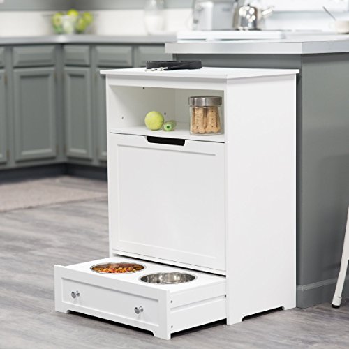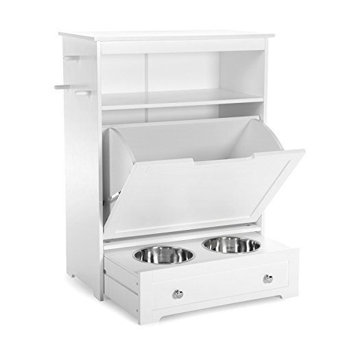 -. Title : Boomer & George White Pet Feeder Station with Food Storage Area and Pull Out Bowl Tray