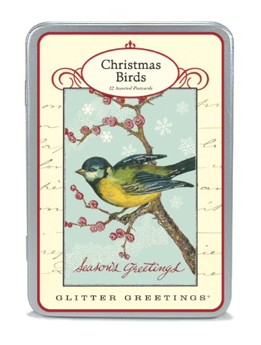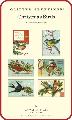 -. Title : Cavallini Christmas Birds Glitter Greetings, 12 Assorted Postcards
