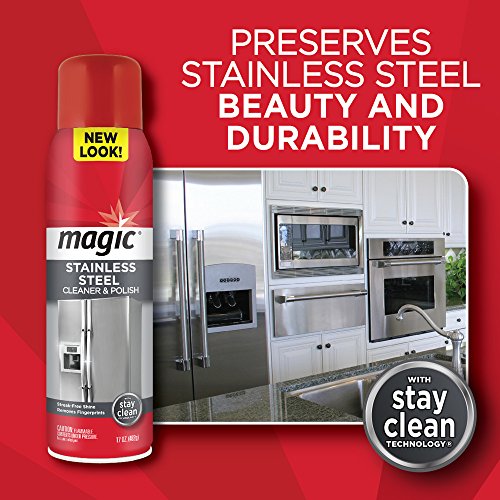 -. Feature : Creates a transparent, protective coating to repel dirt, dust, fingerP.R.Ints and water / Regular cleaning with Magic stainless steel cleaner keeps surfaces shiny, clean and looking "like new" longer / Recommended for: all stainless steel appliances including dishwashers, faucets, refrigerators and other fixtures / Works great on aluminum and chrome surfaces too / Utilizes Stay Clean Technology